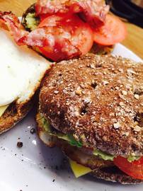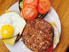 Für alle die eben doch ihre Kohlenhydrate brauchen und auf Spiegeleier stehen, kommt dieser Egg-Burger gerade richtig.