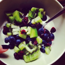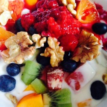 Da Beeren relativ teuer sind greife ich auch gerne mal zu ungesüßten Tiefgekühlbeerenmischungen. Einfach 2 EL auftauen und mit dem Joghurt vermengen. Spart auf jeden Fall Geld und Arbeit!