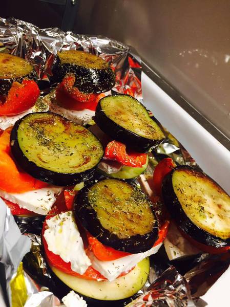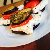 - Jetzt stapelt ihr die Burger mit der Tomate, der Paprika und dem Schafskäse. Zuletzt setzt ihr oben den "Burgerdeckel" drauf. Falls vorhanden könnt ihr alles mit Zahnstochern stabilisieren.